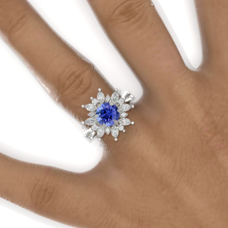 2 Carat Round Snowflake Natural Genuine Tanzanite Floral Halo Engageme - Giliarto