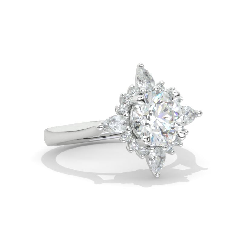 2 Carat Round Snowflake Start Halo Engagement Ring Model 892