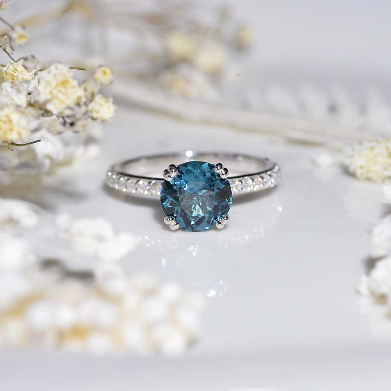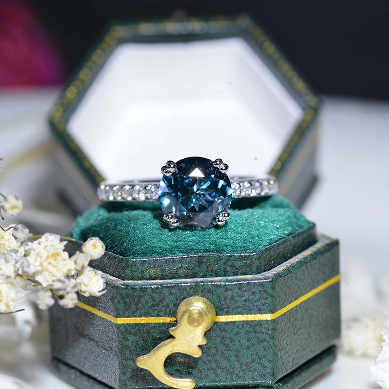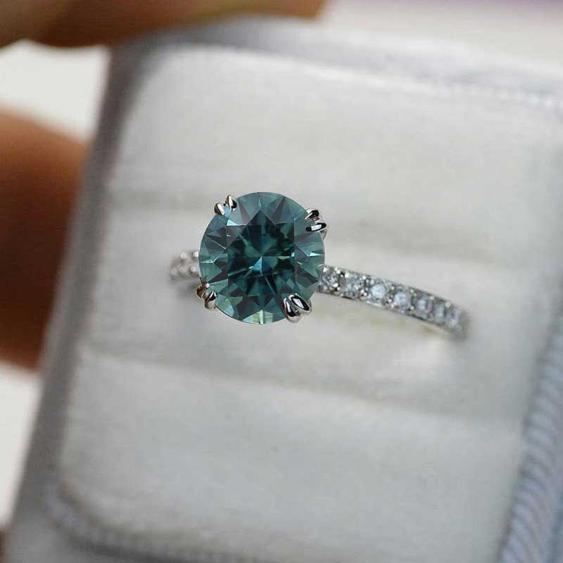 2 Carat Round Teal Sapphire Ring - Giliarto