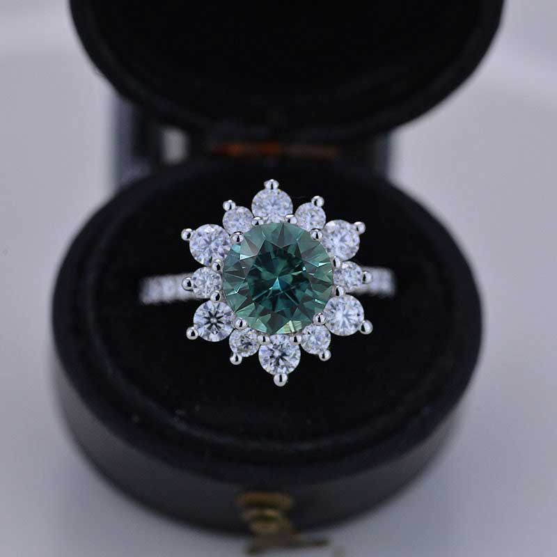 2 Carat Round Teal Sapphire Snowflake Halo Engagement Ring. Victorian - Giliarto
