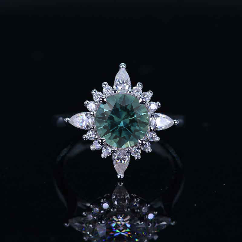 2 Carat Round Teal Sapphire Snowflake Start Halo Engagement Ring - Giliarto