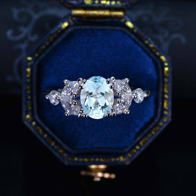2 Carat Royal Genuine Natural Aquamarine 14K White Gold Engagement Pro - Giliarto