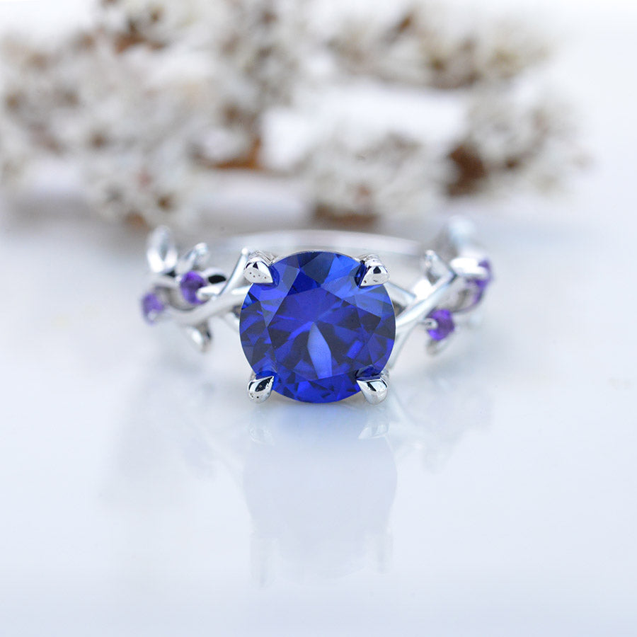 2 Carat Sapphire Amethyst Twig Floral White Gold Engagement Ring - Giliarto