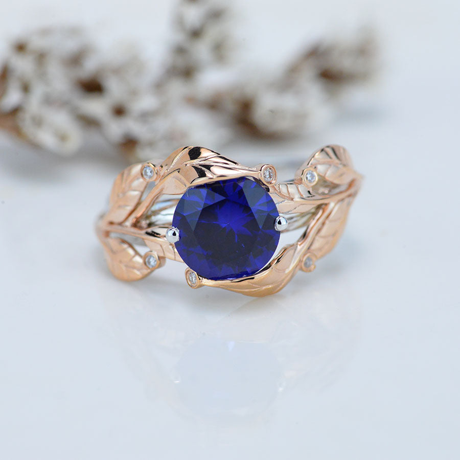 2 Carat Sapphire Floral Gold Engagement Ring