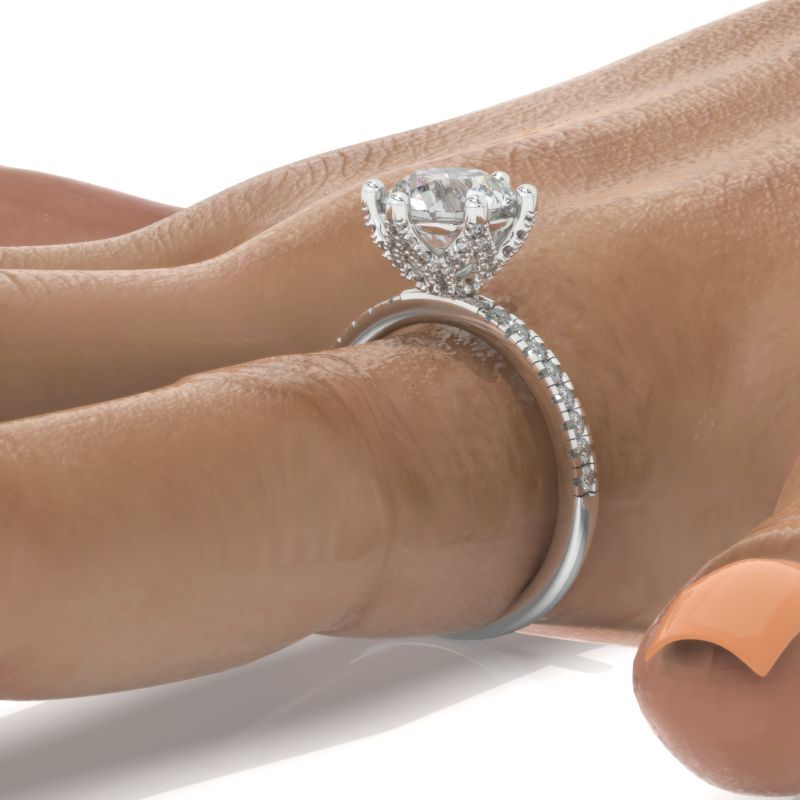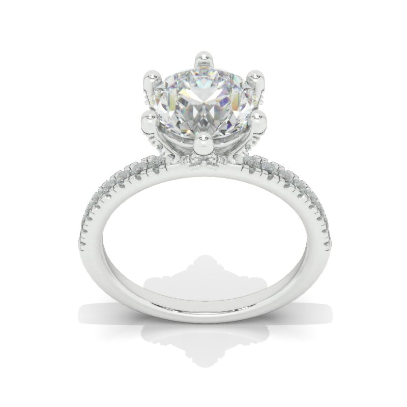 The default design option features 8mm LAB-Grown DiamondĀ Center StoneĀ D-Colorless, VVS1-Clarity, VG-Cut, Ex-Polish, VG-Symmetry set with D- Colorless LAB-Grown DiamondĀ Accent StonesĀ