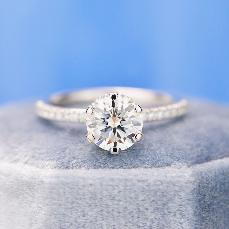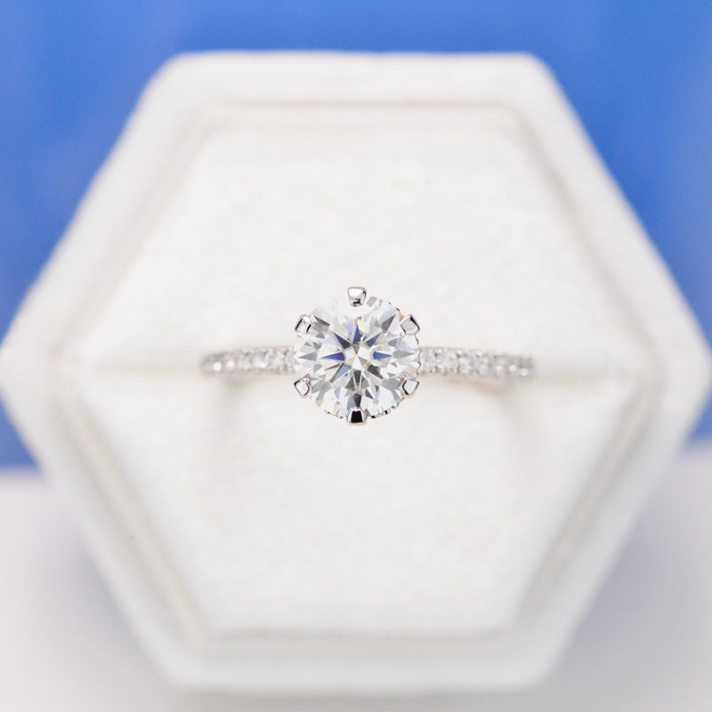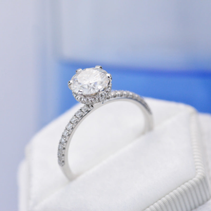 2 Carat Six Prongs Hidden Halo Lab Diamond White Gold Engagement Ring