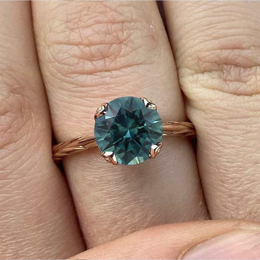 Certified 2 Carat Ethically Lab-Grown Teal Sapphire Center Stone ( Round 8mm, VVS1-Clarity, Ex-Cut, Ex-Polish, VG-Symmetry) in 14K  White   Gold.