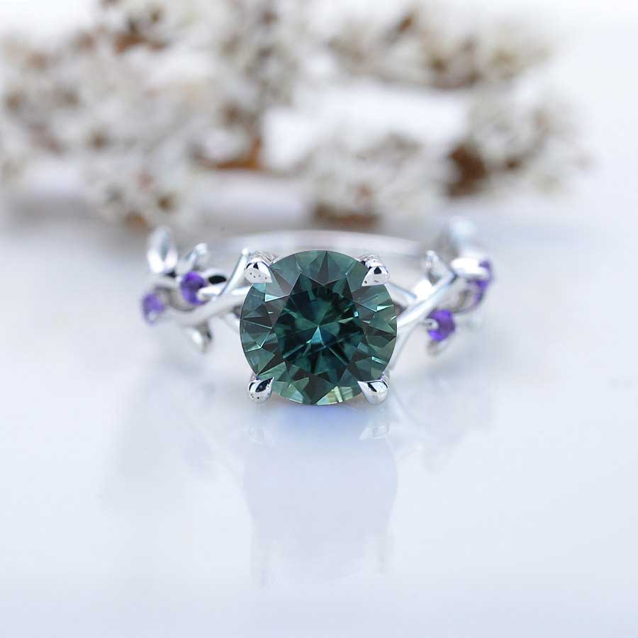 2 Carat Teal Sapphire Twig Floral White Gold Engagement Ring - Giliarto