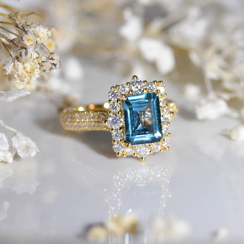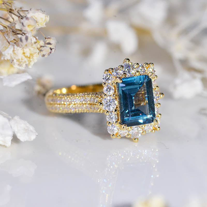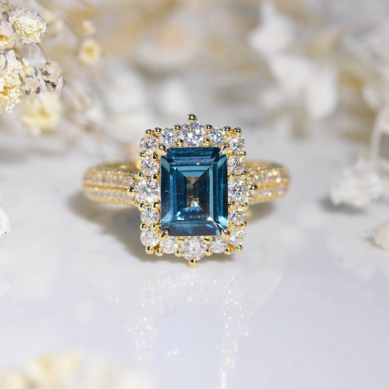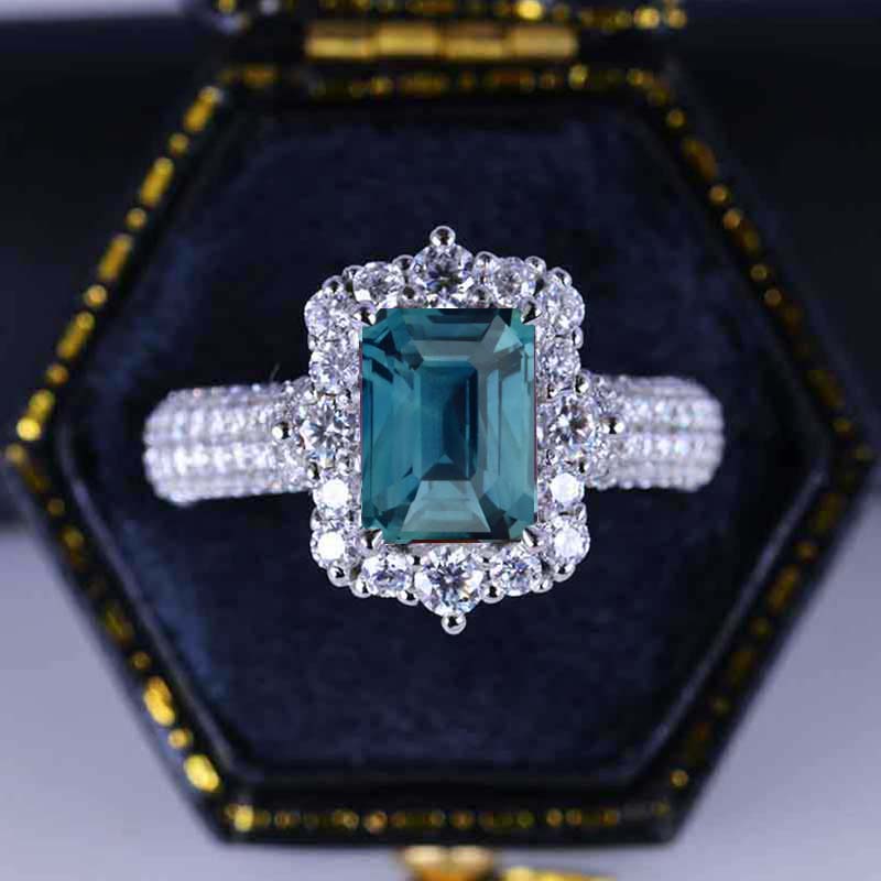 2 Carat Vintage Style Emerald Cut LAB Teal Sapphire White Gold Engagement Ring