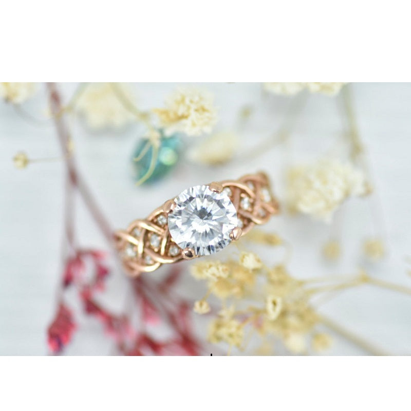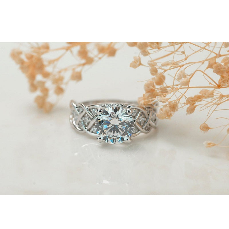 2 Carat White Moissanite Diamond Like Stone Stones in 14K White Rose Y - Giliarto