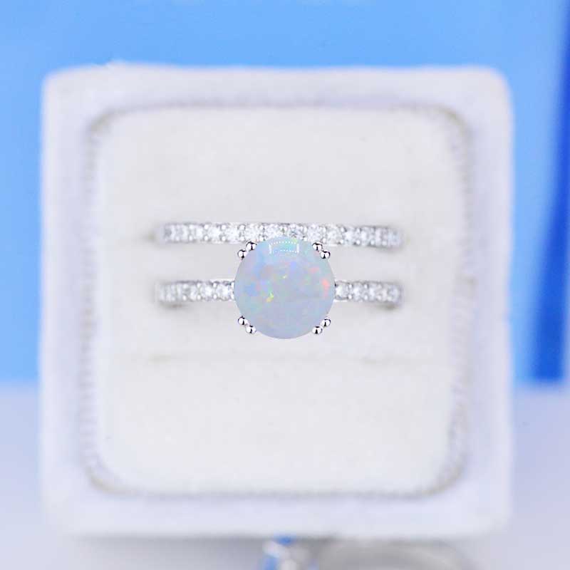 2 Carat White Opal Engagement Eternity Two Rings Set - Giliarto