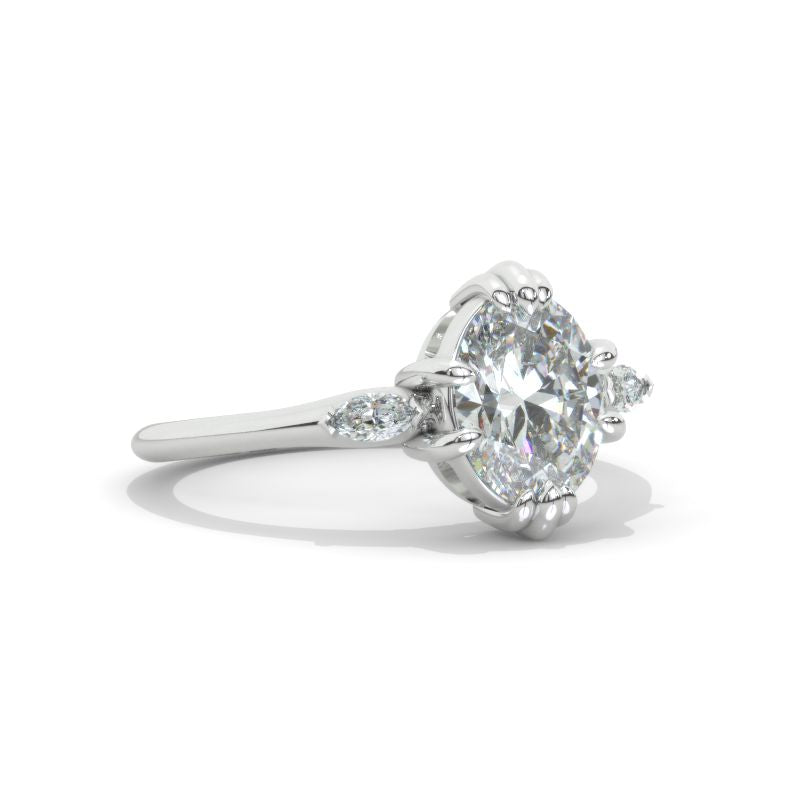 The default design option features 2 Carat Moissanite 9x7mm Oval Center Stone,Â