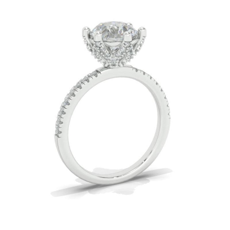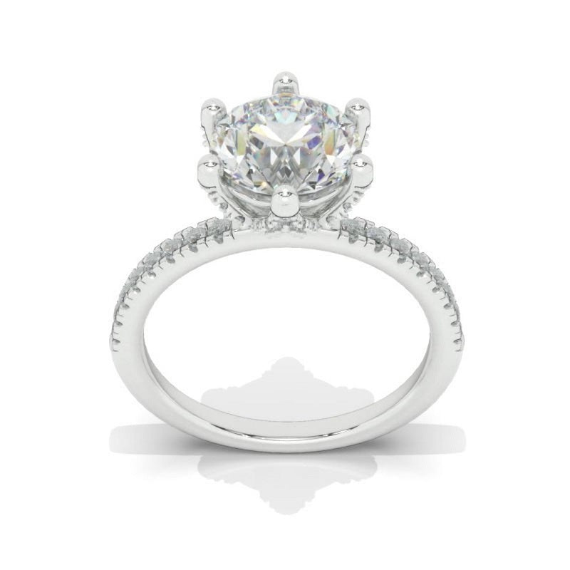 The default design option features 8mm Round Cut LAB-Grown Diamond Stone, D-Colorless, VVS1-Clarity, VG-Cut, Ex-Polish, VG-Symmetry