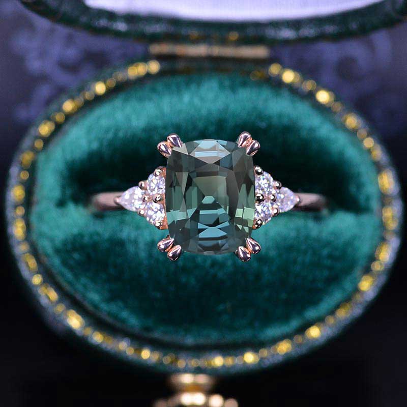 3 Ct Cushion Teal Sapphire Vintage Engagement Ring - Giliarto