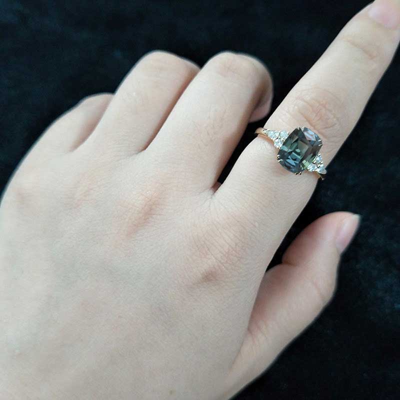 3 Ct Cushion Teal Sapphire Vintage Engagement Ring