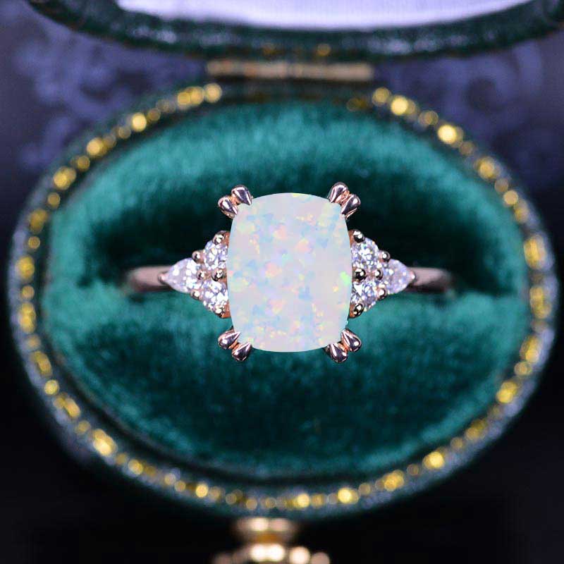2Ct Elongated Cushion Cut Natural White Opal Vintage Engagement Gold R - Giliarto