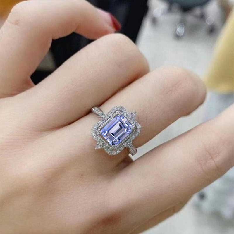 2Ct Emerald Cut Halo Purple Sapphire Ring, Purple Sapphire Ring, Purpl - Giliarto