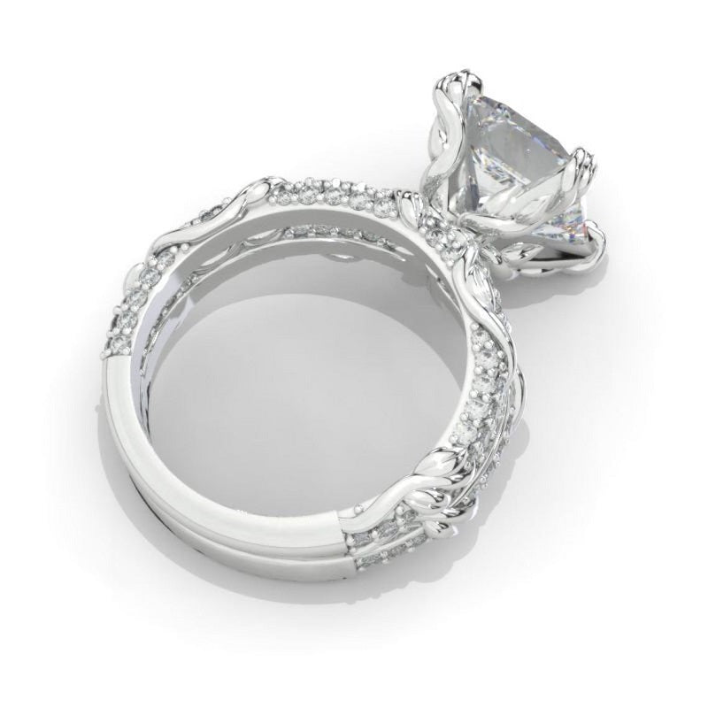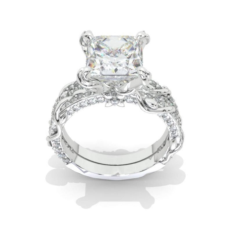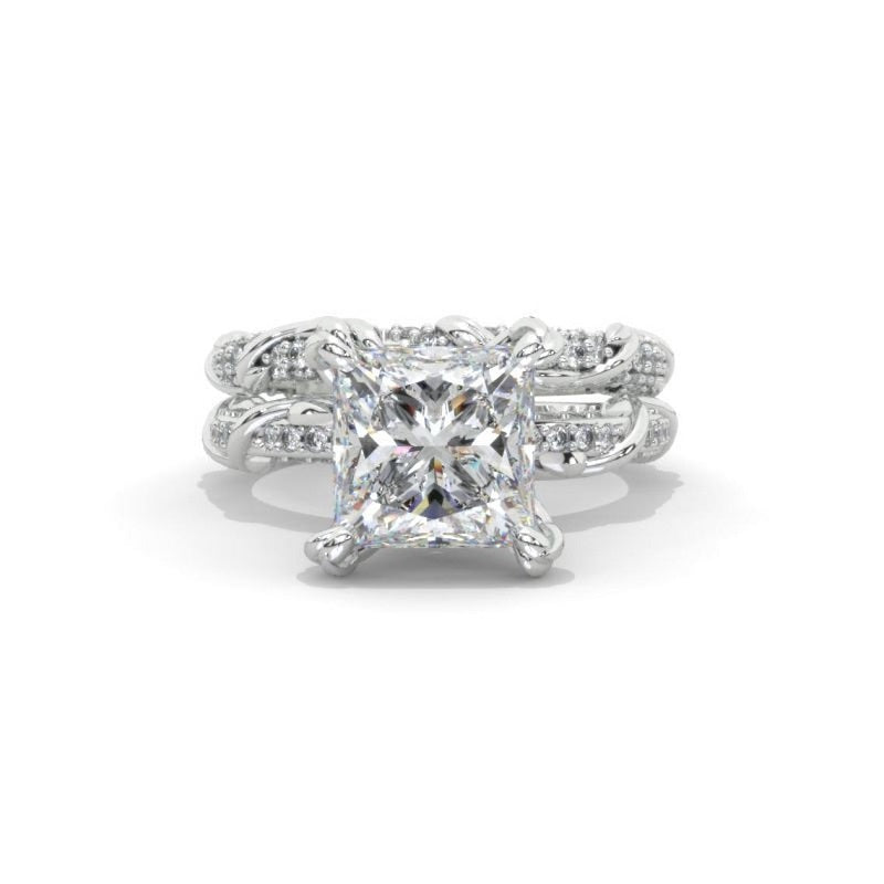 The default design option features 8x8mm Princess Cut MoissaniteĀ Stones,Ā