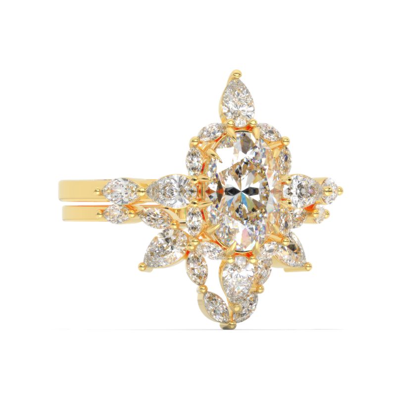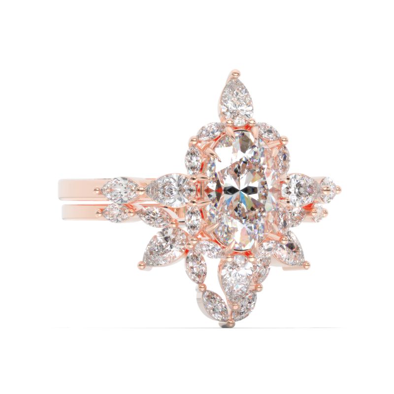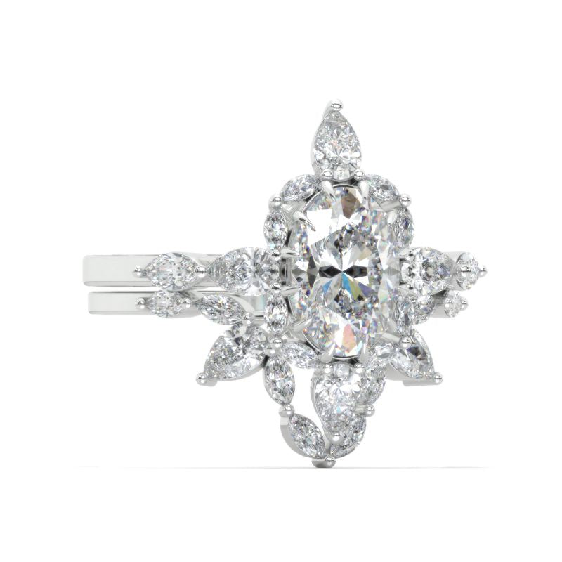 The default design option features Approximately 2+ Carat LAB-Grown DiamondĀ 9x7mm Oval Cut Center Stone,Ā D-Colorless, VVS1-Clarity, VG-Cut, Ex-Polish, VG-Symmetry