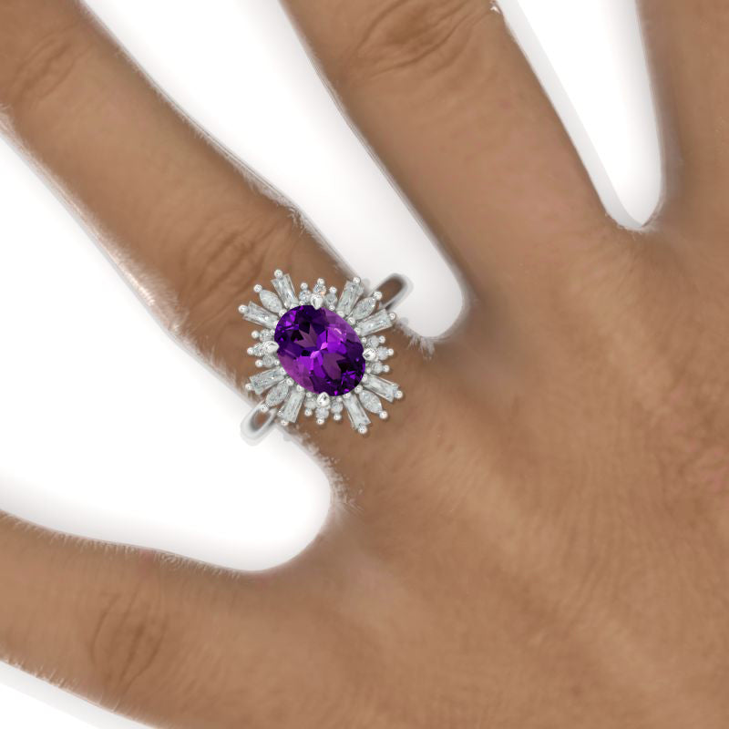2CT Oval Halo Natural Amethyst Vintage Wedding Ring. 2 Carat Oval Enga - Giliarto