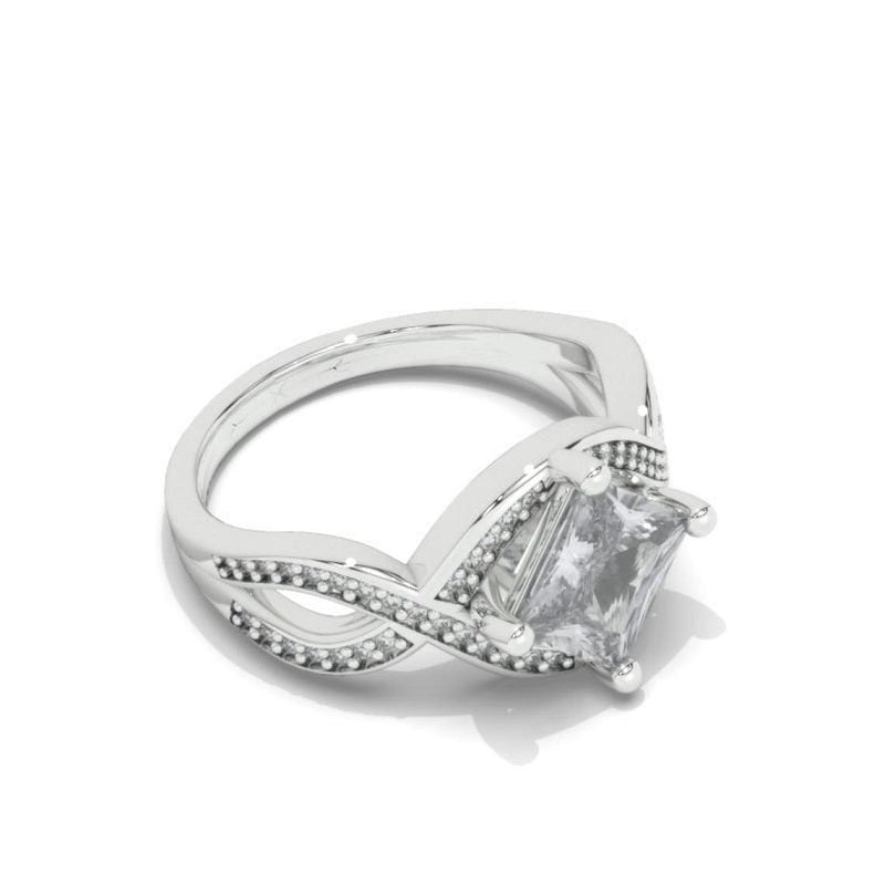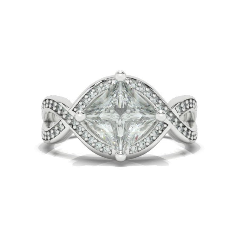 2Ct Princess Cut Dark Blue Grey Gray Moissanite 14K White Gold Engagement Ring Twisted Shank Gold Ring Gray/Blue Shade Ring
