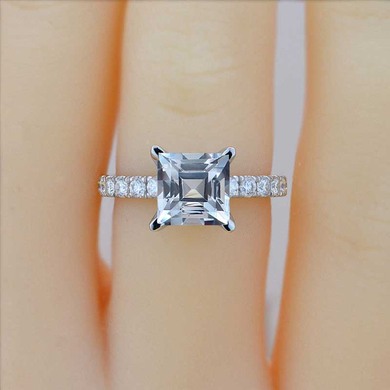 The default design option features 7x7 mm princess cut Genuine Natural Aquamarine stone
