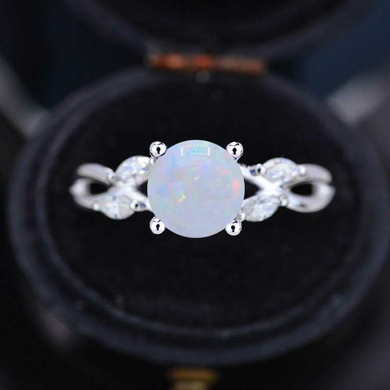 2Ct Round White Opal Vintage Engagement Ring, White Opal Engagement Ri - Giliarto