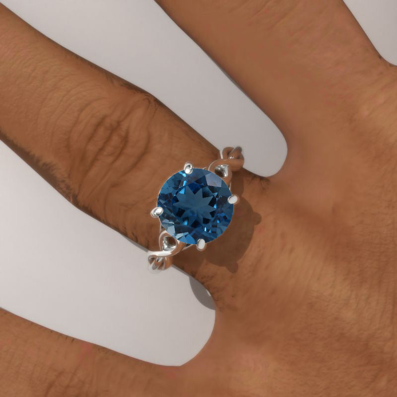 3.0 Carat Genuine London Blue Topaz (RoundĀ 9mm, VVS1-Clarity, Ex-Cut, Ex-Polish, VG-Symmetry) inĀ 14K White GoldĀ  Ring.Ā