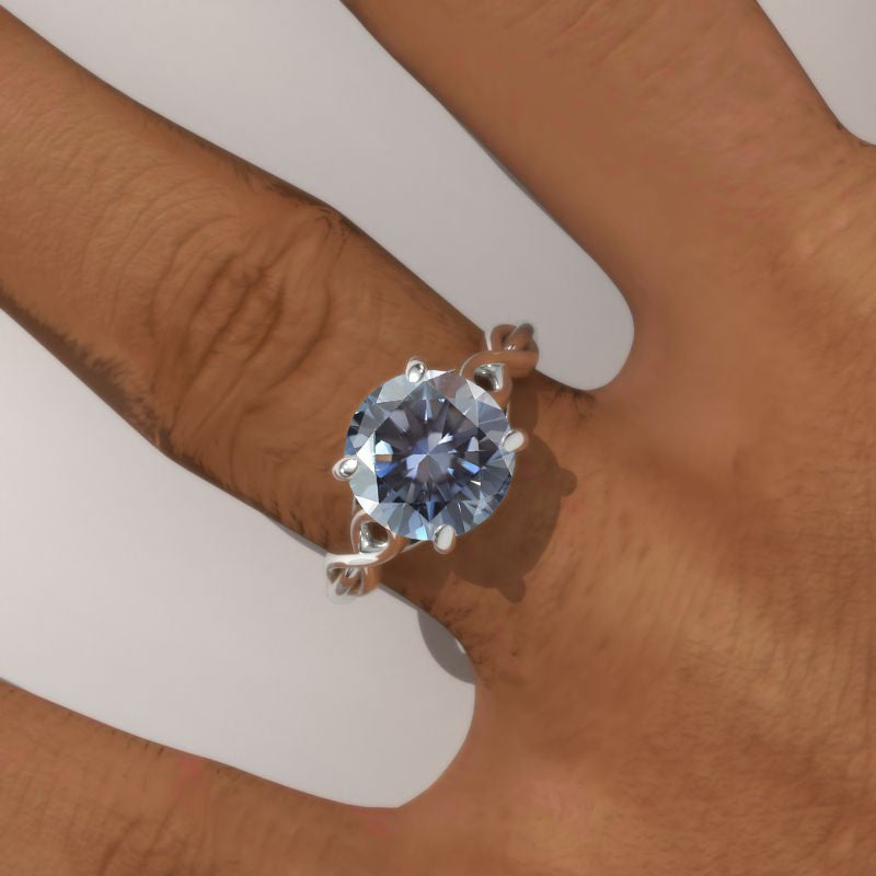 3.0 Carat Gray Moissanite (Round 9mm, Gray-Color, VVS1-Clarity, Ex-Cut, Ex-Polish, VG-Symmetry) in 14K White Gold Ring.Â