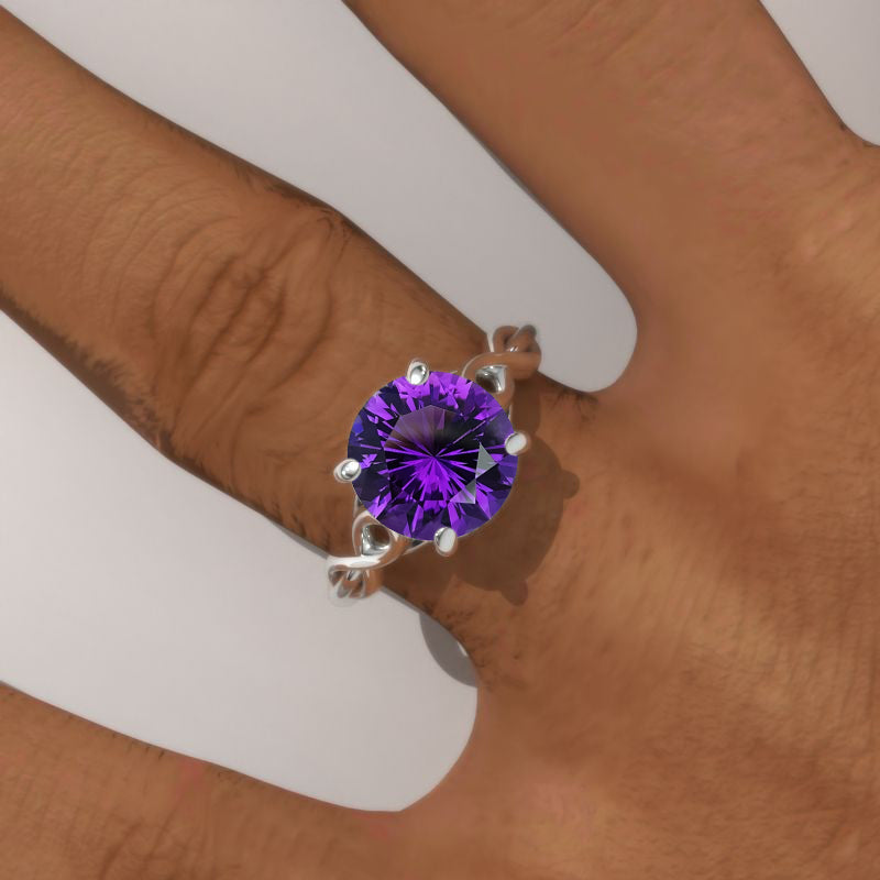 3.0 Carat Natural Amethyst Lattice White Gold Engagement Ring - Giliarto