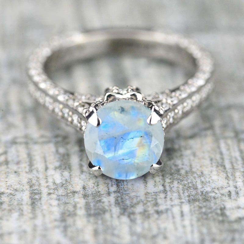 3.2 Carat Genuine Moonstone Engagement 14K White Gold Ring - Giliarto