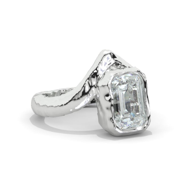 Engagement Ring : 3.5 Carat Giliarto Moissanite Emerald Cut 10x7mm D-Colorless, VVS1-Clarity, VG-Cut, Ex-Polish, VG-Symmetry Center Stone in