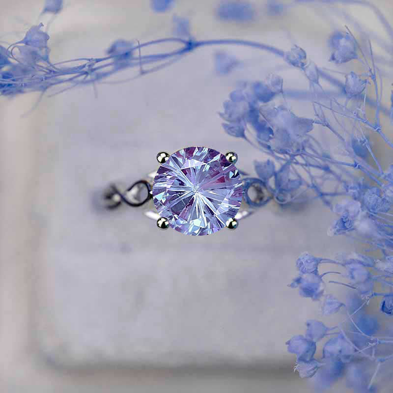3.5 Carat Fireworks Cut Alexandrite Stone 14K White Gold Ring - Giliarto