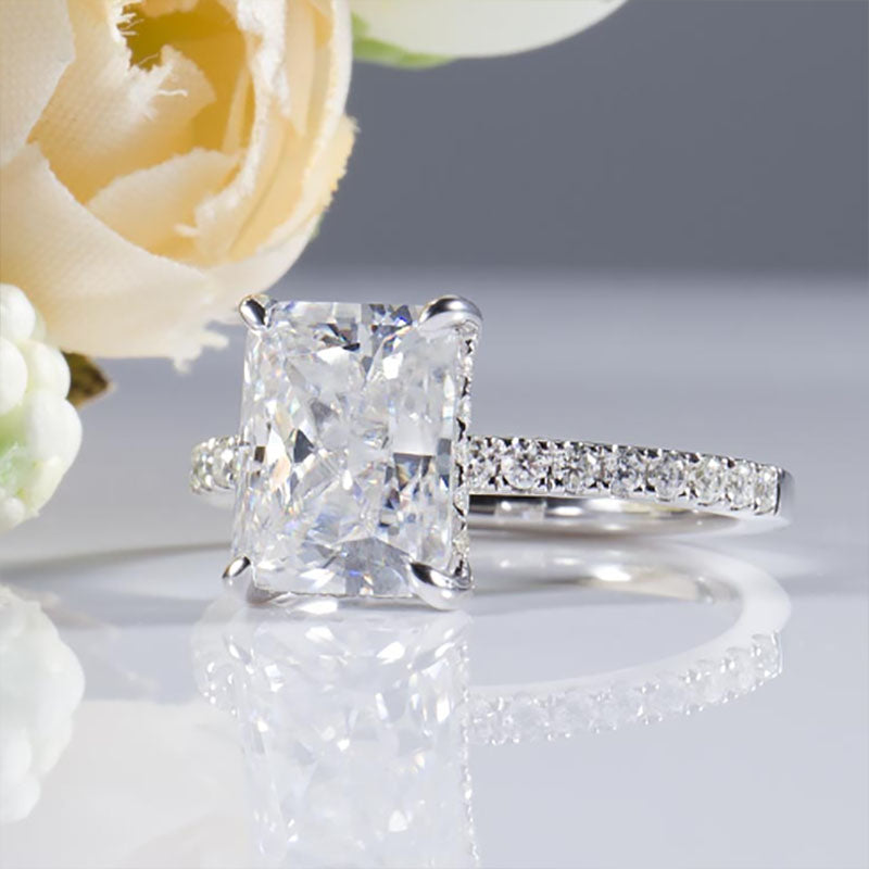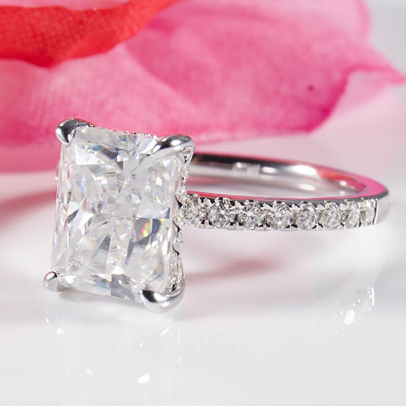 Solitaire Pave Accents Stones, Radiant Ice Crushed Cut Engagement ring.