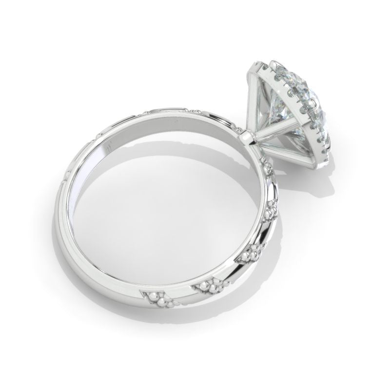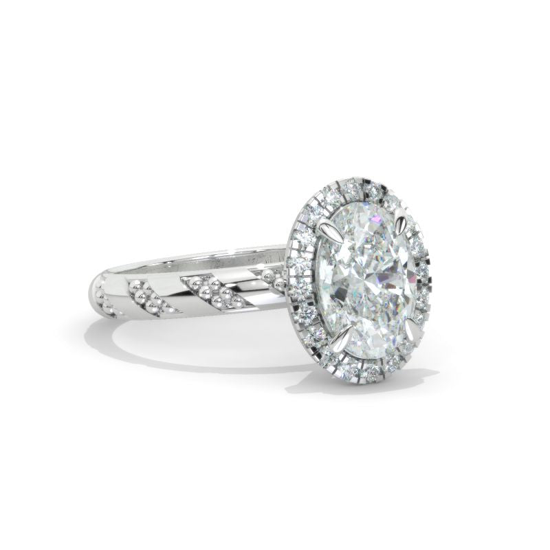 3.5 Carat Oval Cut LAB-Grown Diamond Halo Lace Shank Engagement Ring Model 1216