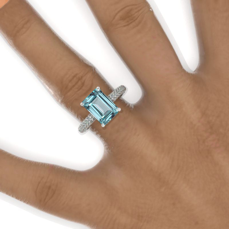 3.5 Carat Radiant Mint Sapphire Hidden Halo Royal Engagement 14K White Gold Ring Michael