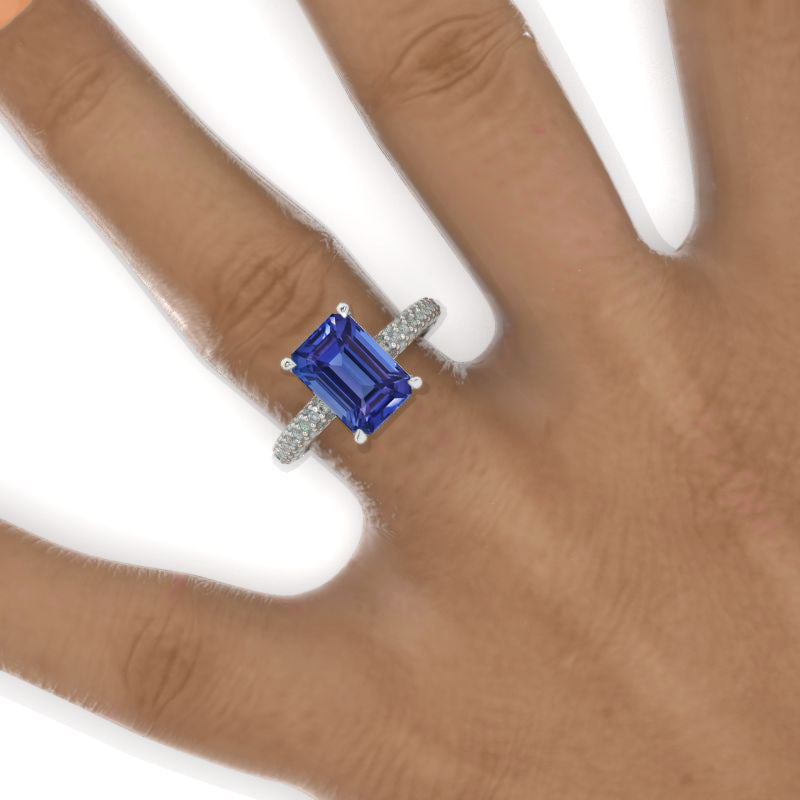 3.5 Carat Radiant Natural Genuine Tanzanite Hidden Halo Royal Engageme - Giliarto