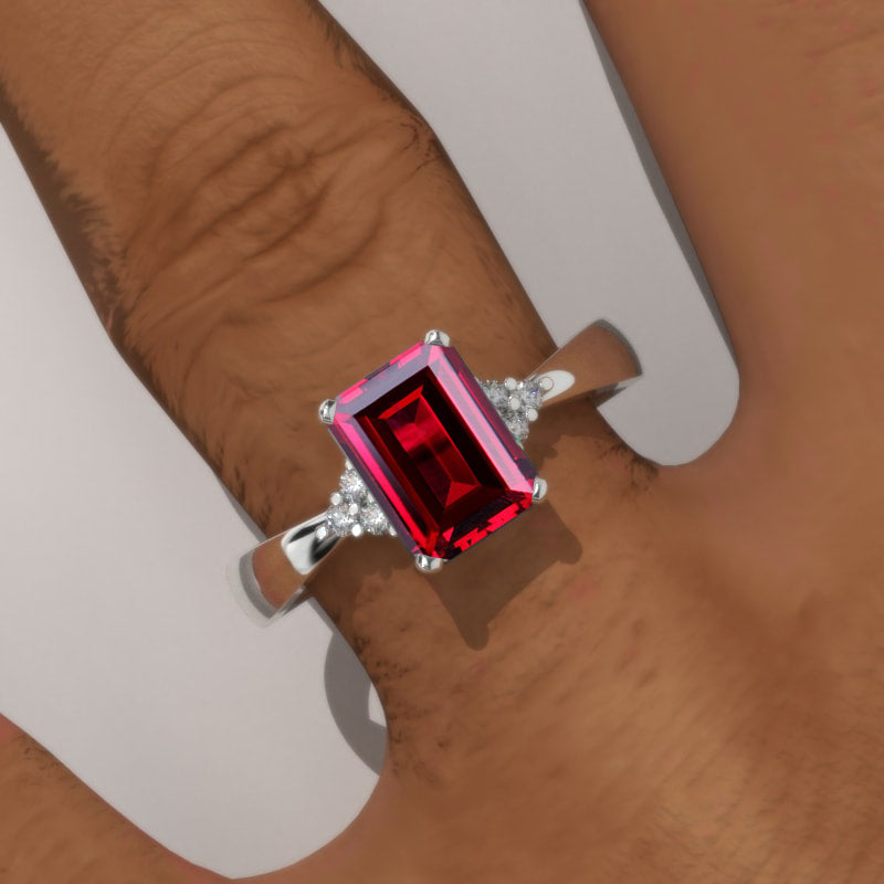 3.5 Carat Ruby Emerald Cut Engagement Gold Ring