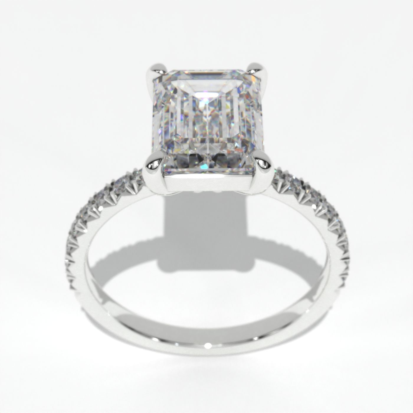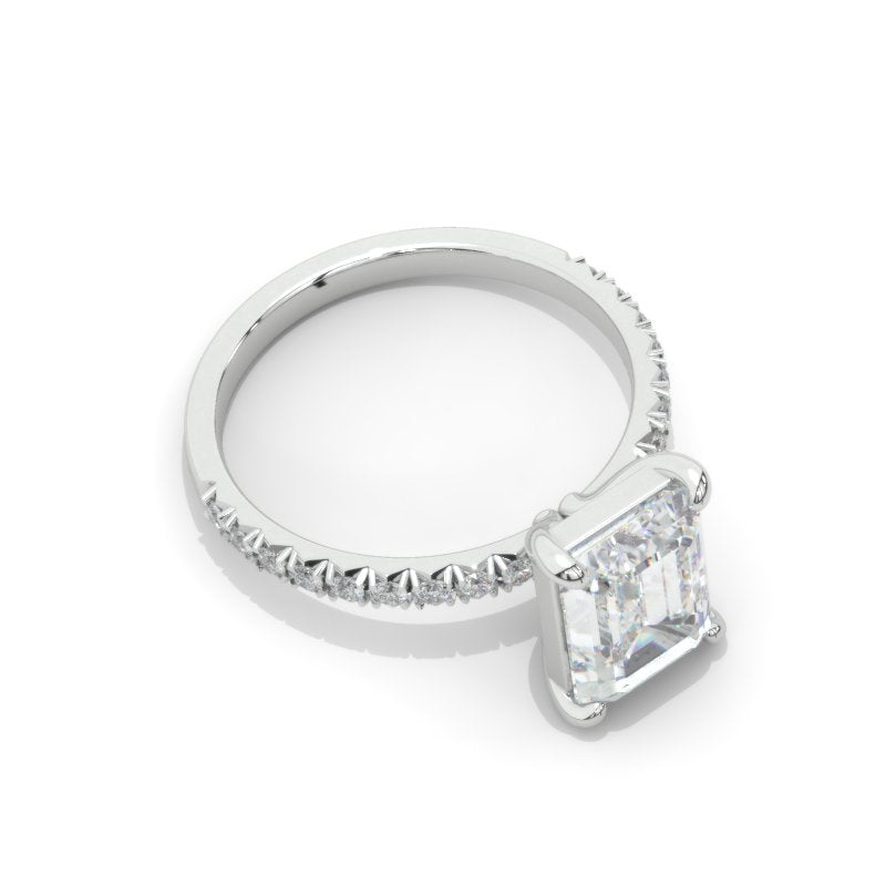 Solitaire Pave Accents Stones, Emerald Cut Engagement ring.