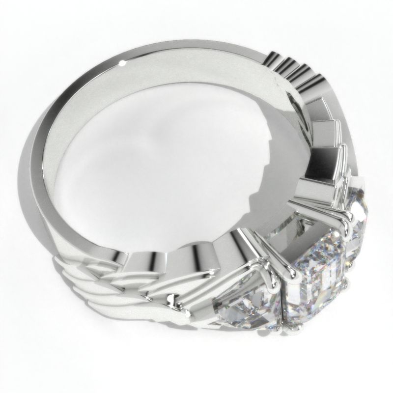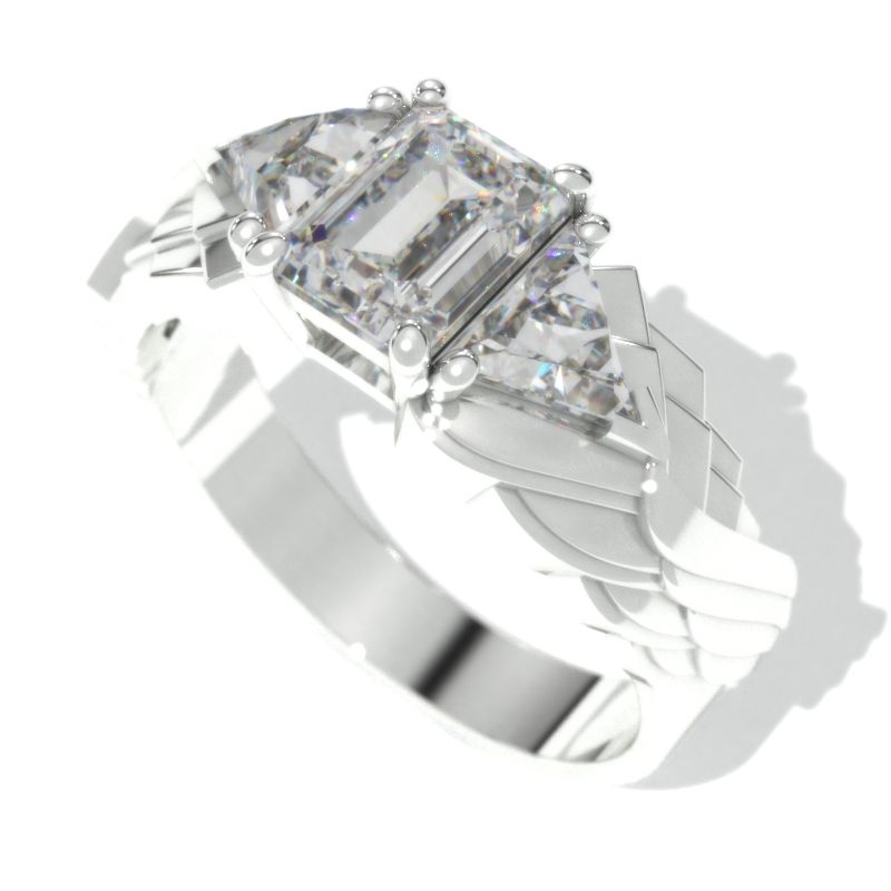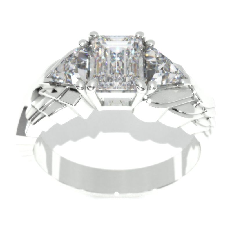 2 Carat Emerald Cut 8x6mm, Giliarto Moissanite D-Colorless, VVS1-Clarity, Ex-Cut, Ex-Polish, VG-Symmetry and 2 Accents stones 1.8 CTW in 14K White Gold Men's Ring.Â