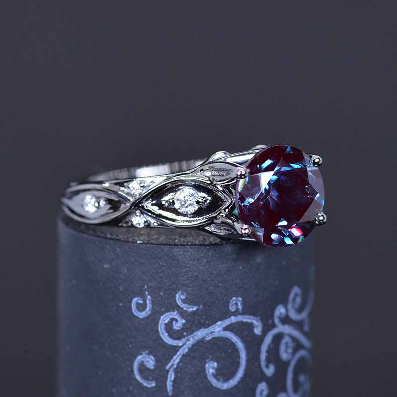 3 Carat Ethically LAB-Grown Alexandrite Center Stone-Round 9mm, VVS2-Clarity, Ex-Cut, Ex-Polish, VG-Symmetry) and 8 - Accents 0.1 CTW with 14K Black Gold.