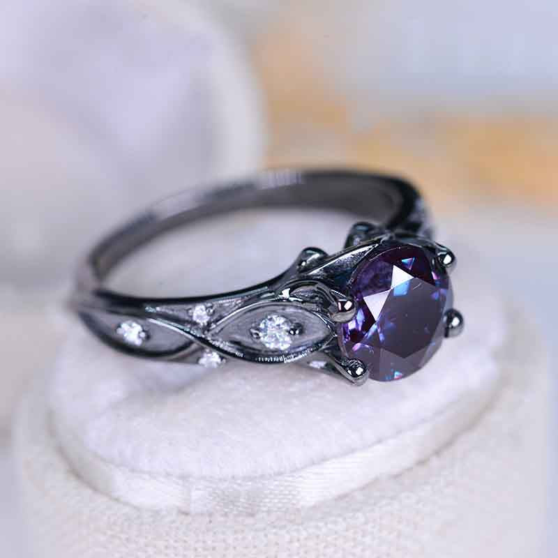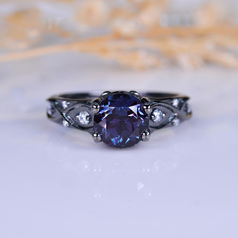 3 Carat 14K Black Gold  Alexandrite Celtic Engagement Ring Floral Ring