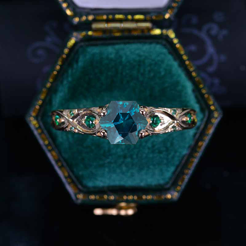 3 Carat 14K Yellow Gold Hexagonal Teal Sapphire Celtic Engagement Ring
