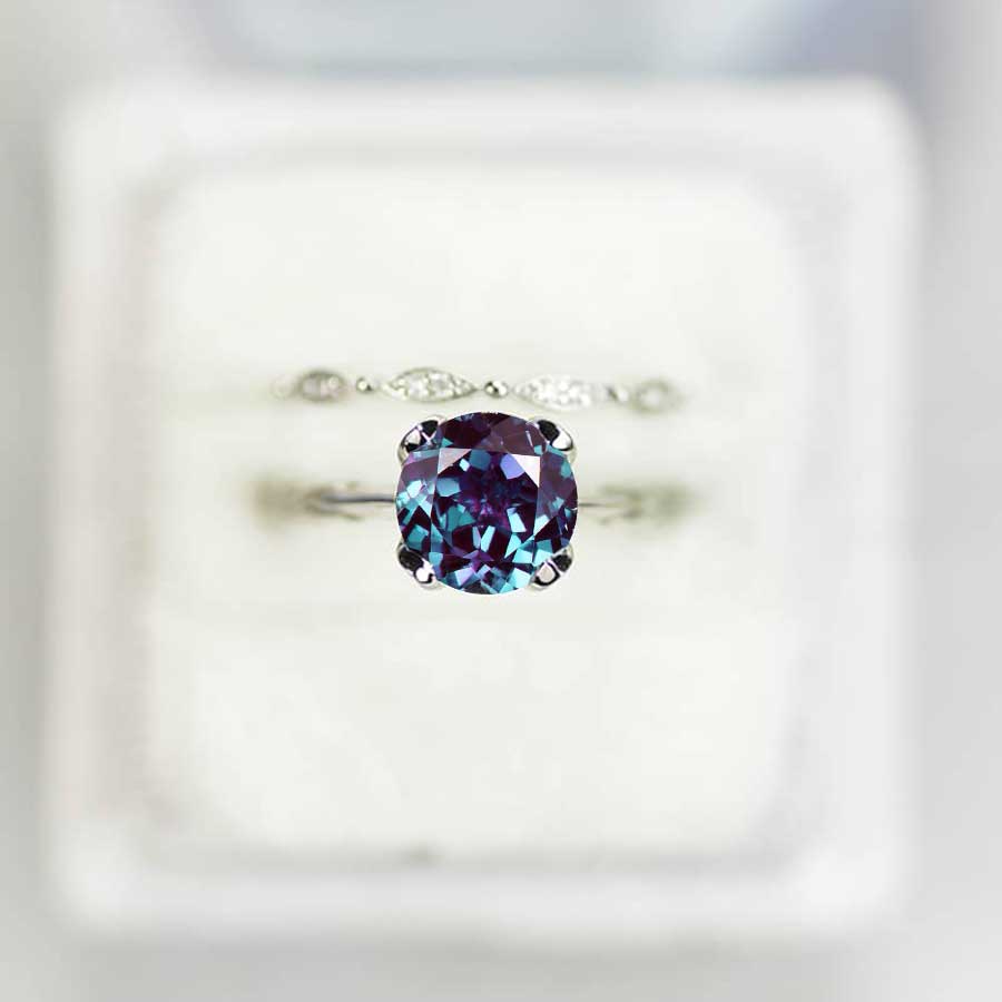 3 Carat Alexandrite Engagement Eternity Gold Ring Set - Giliarto