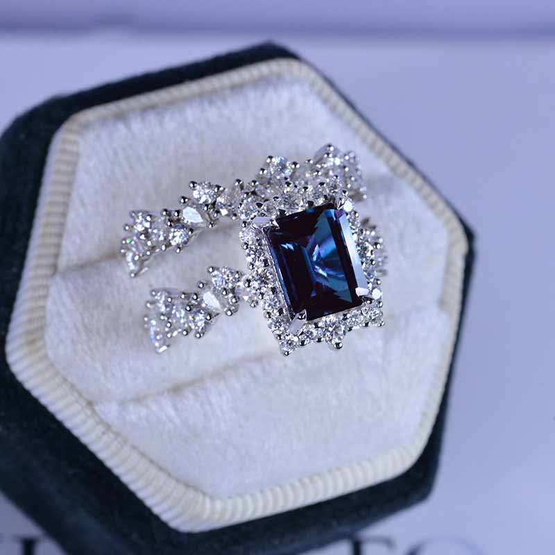 3 Carat Alexandrite Engagement Ring Halo Emerald Cut Alexandrite Engag - Giliarto
