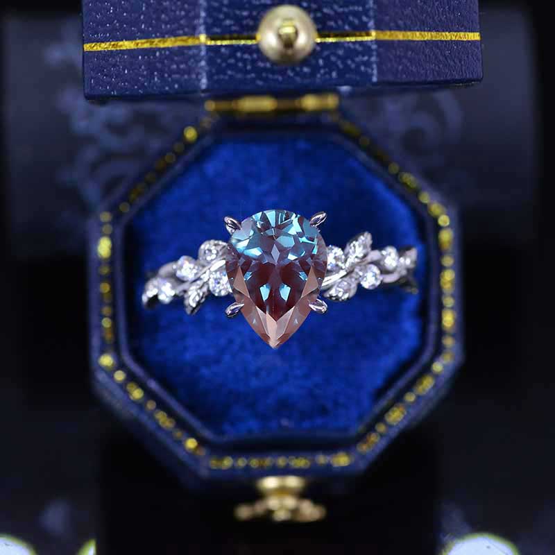 3 Carat Alexandrite Pear Cut Floral White Gold Engagement Ring - Giliarto