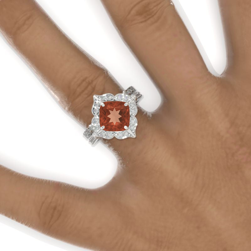 Engagement Ring: 3 Carat Ethically Lab-Grown Zultanite Grade AAA+ Center Stone Cushion 8x8mm and Moissanite Accents : VG-Cut, Ex-Polish, VG-Symmetry Center Stone in 14K White Gold Ring.