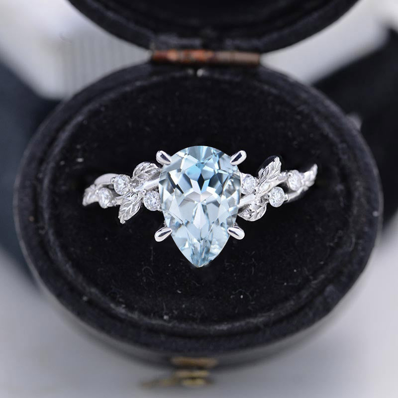 3 Carat Cut Genuine Aquamarine Floral Gold Engagement Ring - Giliarto
