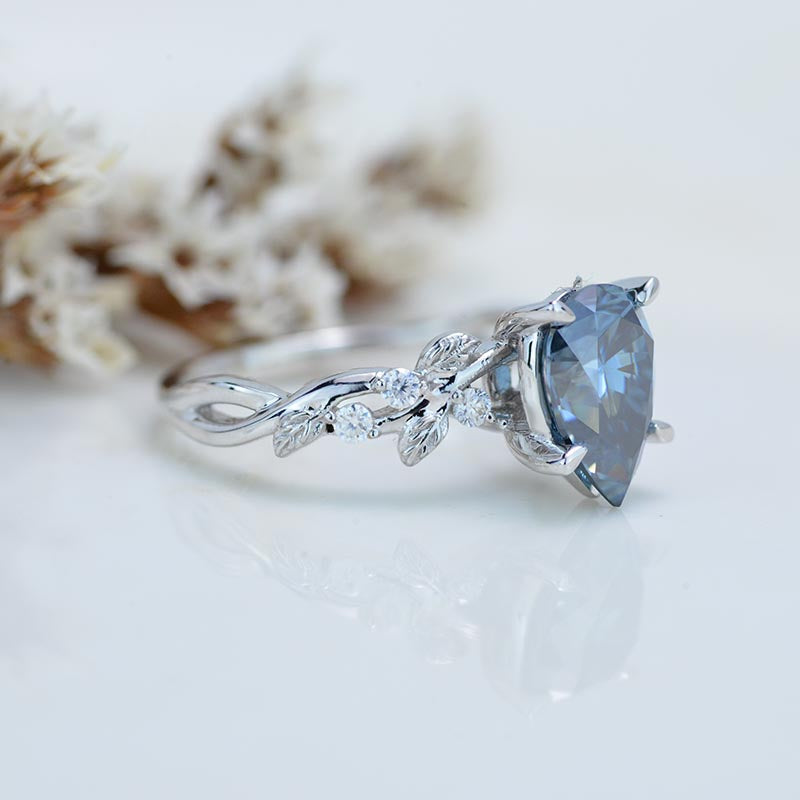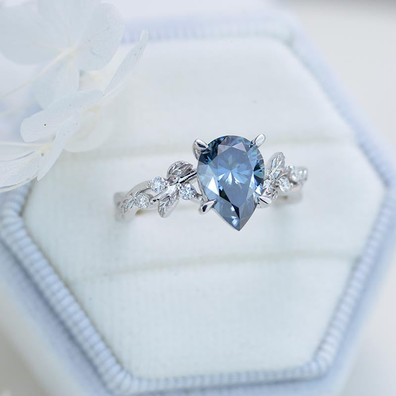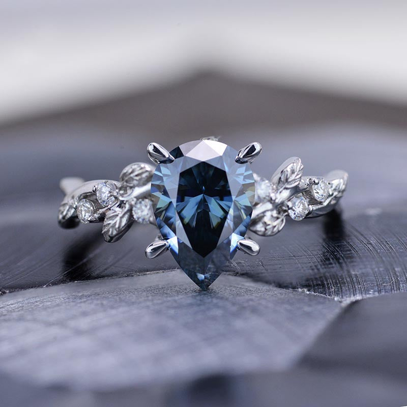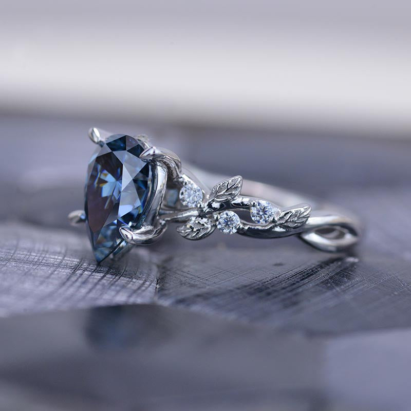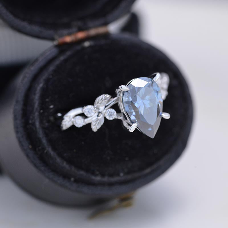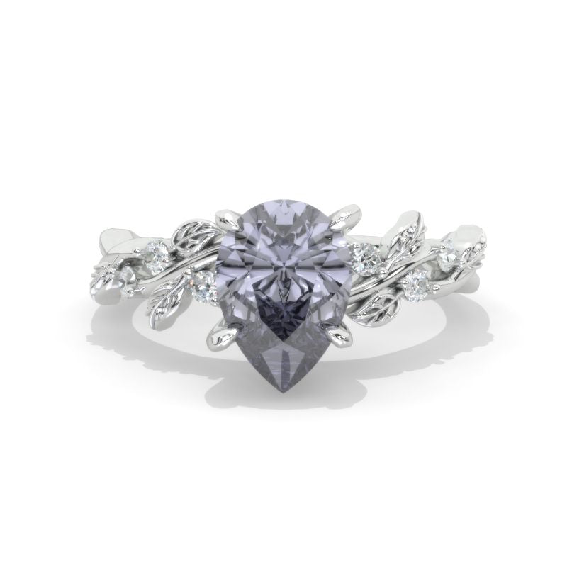 The default design option features 10x7mm Gray Spinel Pear Center Stone, VVS1-Clarity, VG-Cut, Ex-Polish, VG-Symmetry