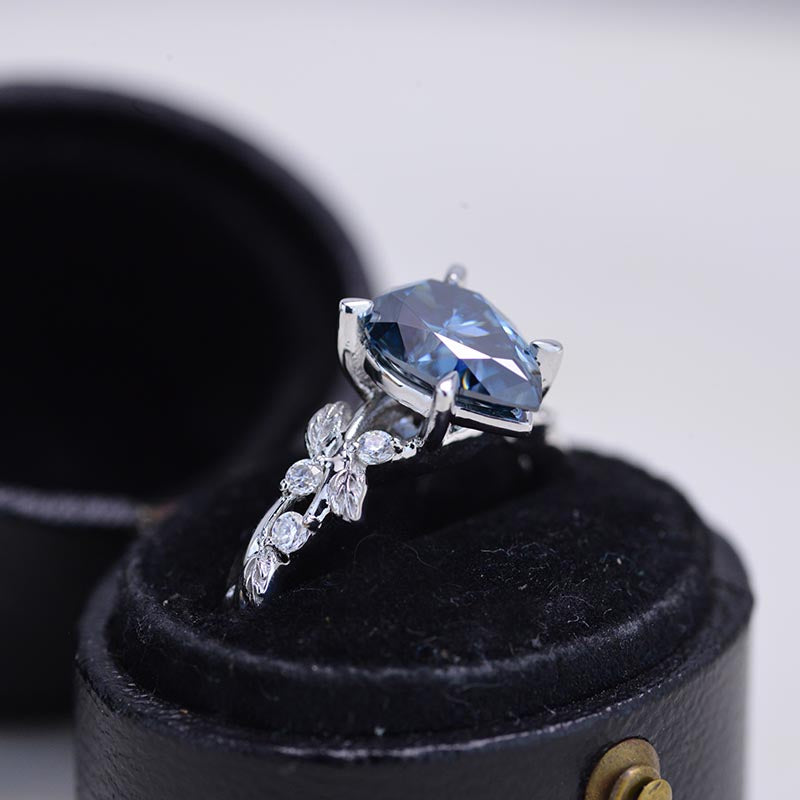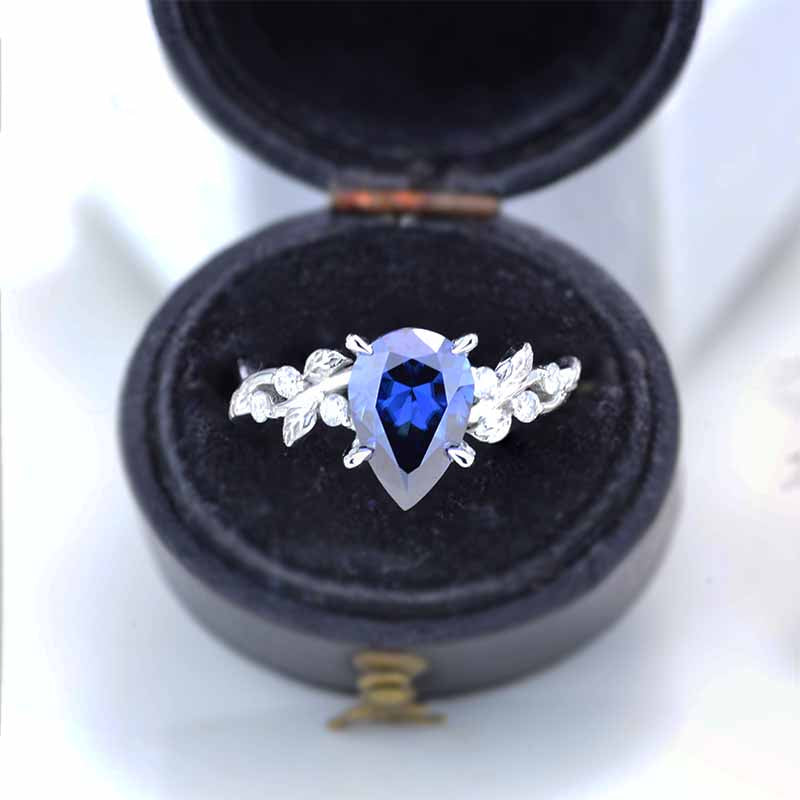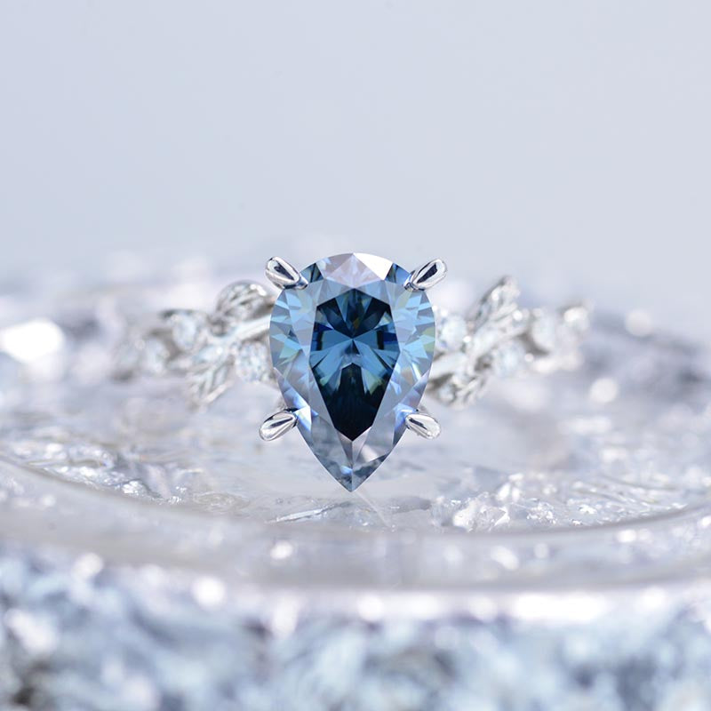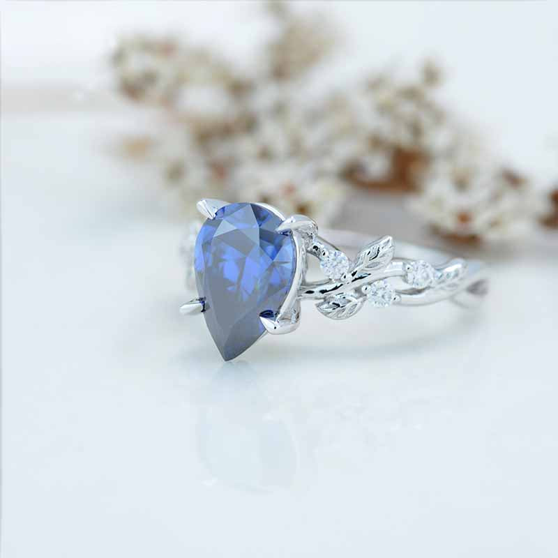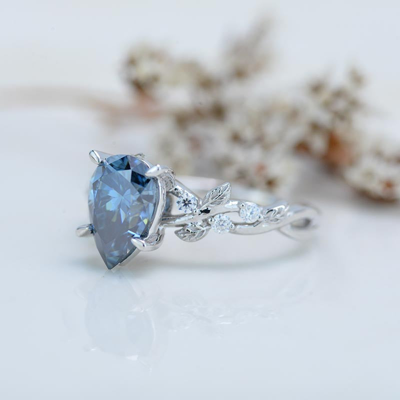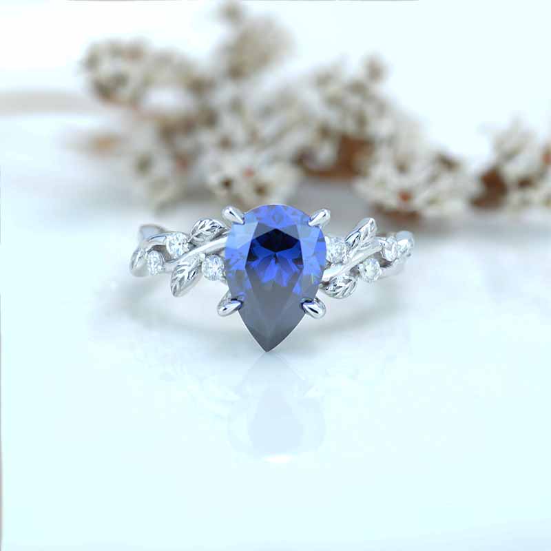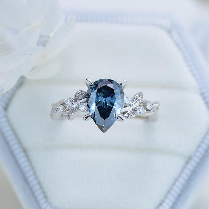The default design option features 10x7mm Gray Spinel Pear Center Stone, VVS1-Clarity, VG-Cut, Ex-Polish, VG-Symmetry